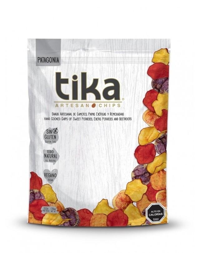 Roots Chips,Sal de Mar, 135 grs. Tika. Papas nativas estacionales, Camotes, Aceite alto oleico 100% de girasol, Aceite 100% de girasol, Sal de mar.