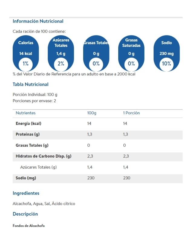 Alcachofa, agua, sal, ácido cítrico.