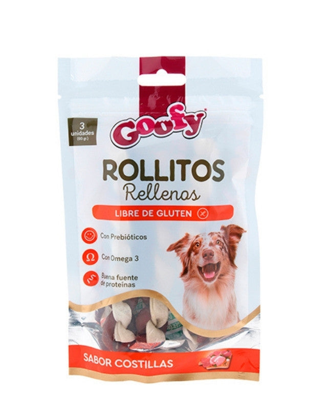 Goofy Rollitos Rellenos Goofy para Perros, Sabor Costilla, 3 un, 60 gr.