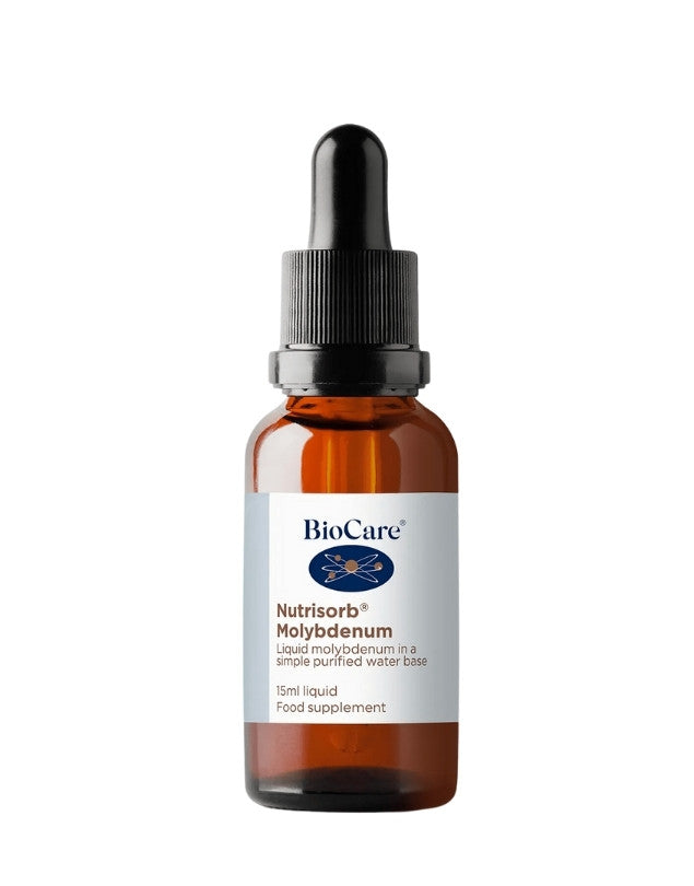Nutrisorb  Molibdeno Liquido, 15ml., BioCare. Nutrisorb® Molibdeno proporciona Molibdato de Sodio en una base simple de agua purificada, quelado con ácido cítrico y de fácil absorción. Apto Veganos.
