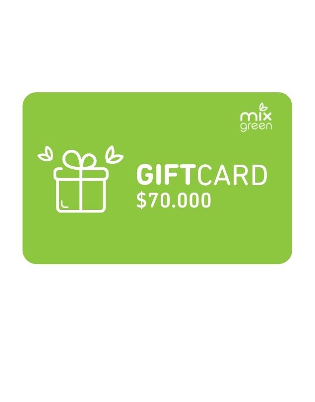 Tarjeta de regalo por un monto de $70.000 para canjear en MixGreen.cl. Un regalo consciente, ecológico y con una gran variedad de posibilidades sustentables para quien la reciba!