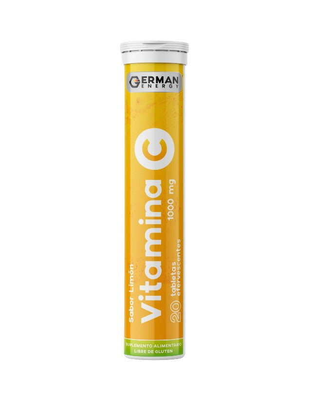 Vitamina C limón, 1000 mg, 20 tabletas. German Energy. Suplemento alimentario efervescente de vitamina C de limón, ayuda a reforzar el sistema inmune. Apto para Veganos, libre de gluten.