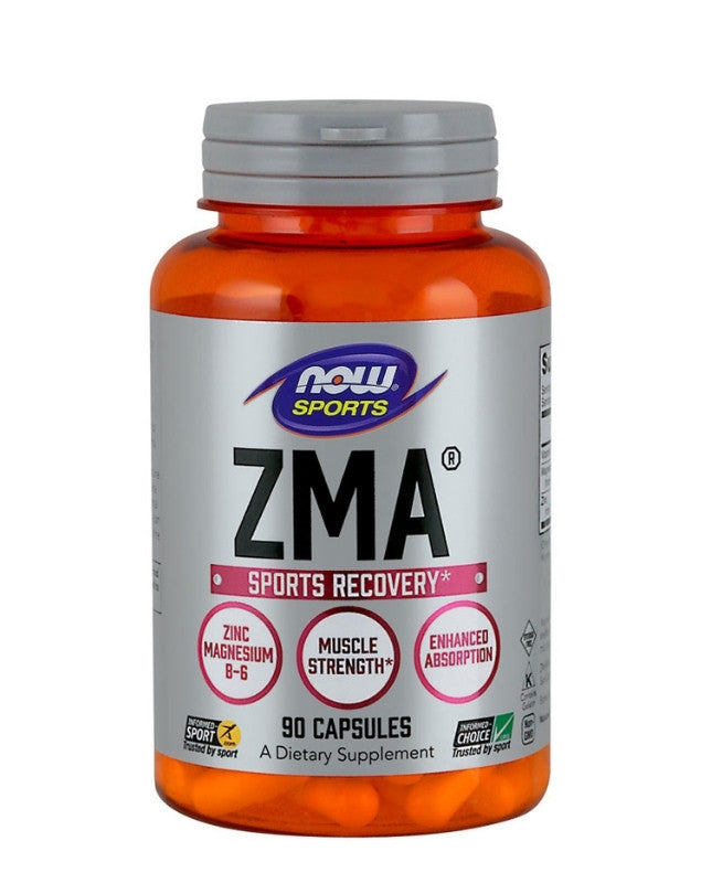 ZMA, 800 mg, marca Now, es una combinación de Zinc, Magnesio y Vitamina B-6. Presentación envase con 90 cápsulas vegetales. Formula vegana