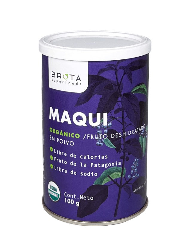 Maqui en Polvo ​Originaria de la Patagonia chilena, considerado uno de los frutos con mayor poder antioxidante y retrasa el envejecimiento celular. Tiene un alto contenido en vitamina C, por lo tanto fortalece el sistema inmune, además es regulador de la glucosa en la sangre, por lo que las personas que padecen de diabetes se pueden ver beneficiadas con el consumo de este superalimento. 100 gr