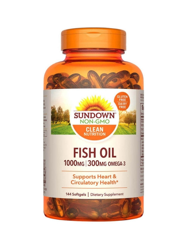 Sundown Aceite de Pescado (Fish Oil) Omega 3, 1000 mg, 144 softgel