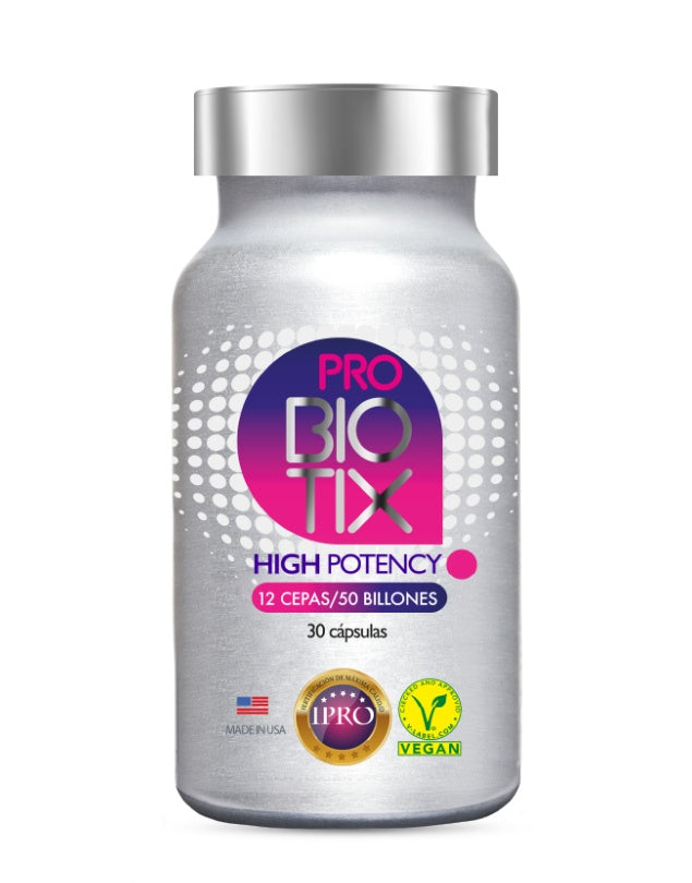 Probiótico multicepa diseñado para uso diario. Contiene 4 cepas identificadas y respaldadas en sus efectos benéficos en 15 billones de Unidades Formadoras de Colonias (UFC). ProBiotix contribuye a mantener el equilibrio de la flora intestinal.