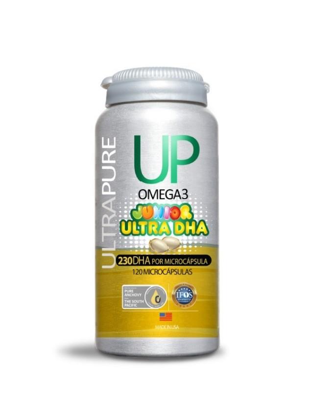 Omega UP Junior Ultra DHA es un suplemento nutricional para niños con alta concentración de DHA para apoyar su concentración y memoria. Omega UP Junior Ultra DHA entrega todos los beneficios del más puro aceite Omega 3 en un formato especial para niños.
