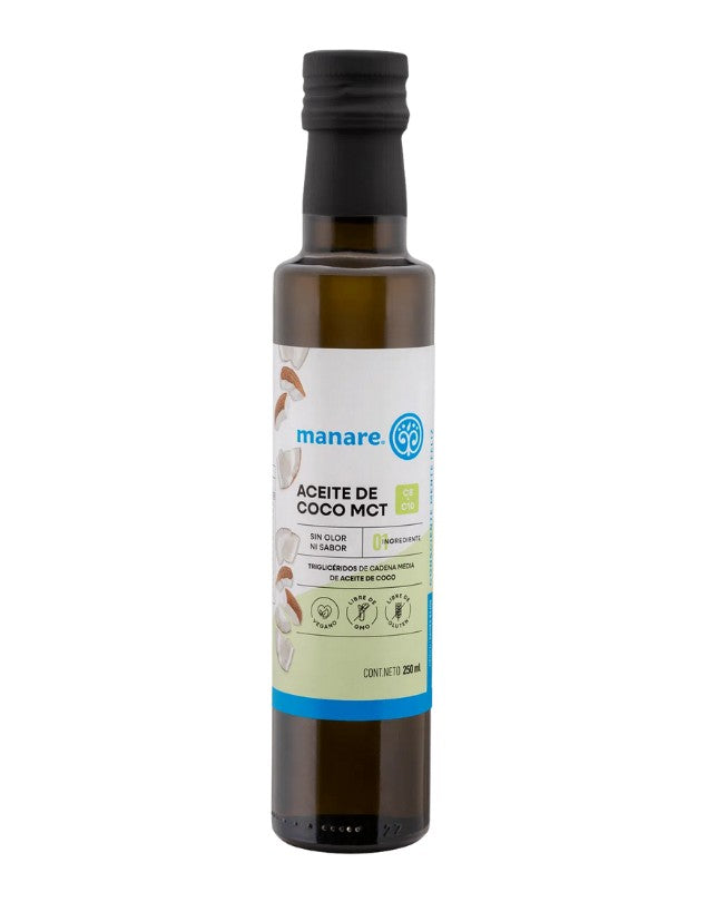 Aceite de Coco, Sin Olor, Orgánico, 500ml. Manare. Ideal para cocinar sin alterar el sabor de tus recetas. Orgánico, puro y sin olor, perfecto para todas tus preparaciones. Características 100% aceite de coco orgánico. Sin olor ni sabor. Libre de gluten, transgénicos (GMO) y colesterol. Apto para veganos.