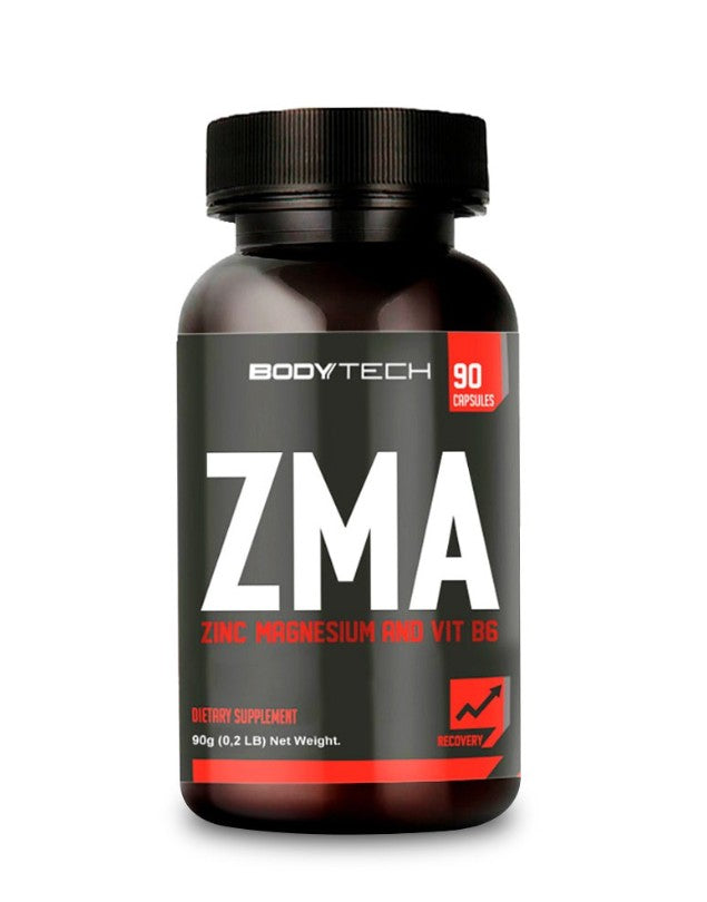 ZMA de BodyTech, esta formulado con Zinc (como zinc monometionina y aspartato de zinc), Magnesio (como aspartato de zinc) y Vitamina B6 (como clorhidrato de piridoxina).