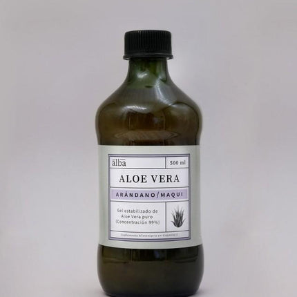 Aloe Vera + arándano y Maqui . Suplemento Alimentario en Vitamina C. Nuestro Aloe arándano Maqui, contiene el mucílago de Aloe Vera, el que gracias a un tratamiento de calor mantiene sus propiedades inalterables en el tiempo (situación que no sucede con el Aloe fresco, que se oxida en presencia del aire). Ha sido reconstituido al 100%, con la misma concentración de principios activos que el mucílago de la planta.