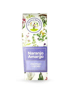 Uso interno (Enfermedad o Síntoma) El naranjo amargo como planta medicinal es utilizado para el insomnio, nerviosismo, estrés (infusión de flores). Dispepsias, inapetencia, indigestión, asma, gripe, resfríos, tos (cocimiento de la cáscara). Uso Externo Fragilidad capilar. PREPARACIÓN INFUSIÓN GRANEL: La infusión se prepara con 1 cucharada de flores para 1 litro de agua recién hervida, dejando reposar durante 5 minutos: beber 2 tazas 3 en la tarde. La decocción (cocimiento) se prepara hirviendo 1 cucharada de cáscaras en un litro de agua durante diez minutos : beber 1 taza 3 veces al día. PREPARACIÓN BOLSITA INFUSIÓN: Repose 2 a 3 minutos, tapando la taza,una bolsita en agua recién hervida. Beber 3 tazas al día. PRECAUCIONES: Puede producir efectos adversos cardiovasculares ya sea en la frecuencia cardiaca o en la presión sanguínea, los que son significativamente potenciados por cafeína. Está contraindicada su administración simultánea con medicamentos que contengan ciclosporina.Deben evitar el consumo personas en tratamiento con IMAO (antidepresivos inhibidores de la enzima Mono Amino Oxidasa), con hipertensión severa, diabetes mellitus, glaucoma e hipertrofia prostática. Administrar con precaución en embarazadas y niños menores; no exceder las cantidades indicadas. Estos productos tienen el carácter de auxiliares sintomáticos y no reemplazan lo indicado por el médico en el tratamiento de una enfermedad. Al consultar al médico, infórmele que está usando esta hierba medicinal. Evite su preparación en utensilios de aluminio. OTROS ANTECEDENTES: Su uso está avalado sólo por la tradición. EFECTO: Sedante suave; hemostático; estomacal..
