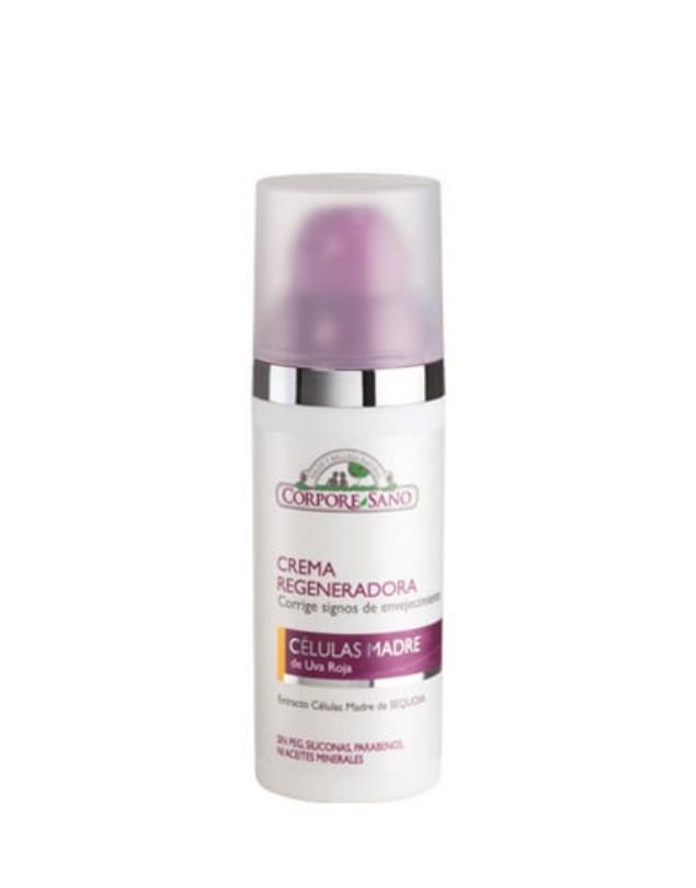 La Crema Regeneradora de Corpore Sano está elaborada con células madre vegetales obtenidas de la flor de la Uva Roja y de la hoja de la Secuoya. Las células de Secuoya liberan proteoglicanos, colágeno y metaloproteínas que confieren, tersura, firmeza e hidratación a la piel. La Senna contiene una estructura muy similar a la del ácido hialurónico, por lo que proporciona una buena hidratación y además protege contra el daño celular causado por los rayos UVA.