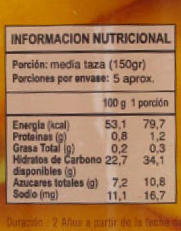Ingredientes: Duraznos (75%), agua, alulosa.