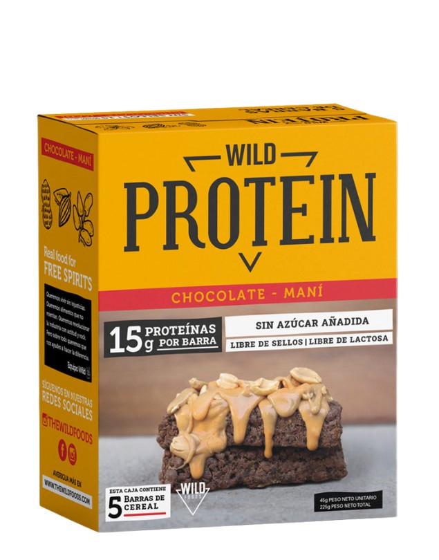 Pack de 5 Barras de Cereal Wild Protein de 45 g c/u Chocolate Maní Wild Protein