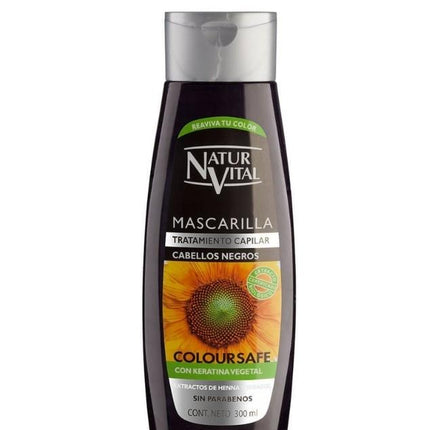 Mascarilla ColourSafe cabellos Negros de alta compatibilidad dérmica, aporta en sólo 5 minutos intensos reflejos de color. Además, reestructura, protege y aportar un intenso brillo de color negro que perdura 3 ó 4 lavados. Es compatible con cabellos naturales y teñidos. Intensifica y permite que el color permanente permanezca más tiempo.