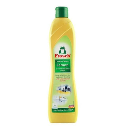 El limpiador en crema FROSCH de Limón es un limpiador poderoso e higienizante por las propiedades de sus componentes, polvo de mármol y extractos de cascara de limón orgánico. Proporciona un aroma a limón muy agradable en el ambiente. Marca Alemana, Concentrado, Libre de Quí­micos, Biodegradable, Veganos, Hipoalergénicos, envases reciclados y reciclables.