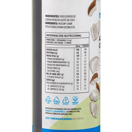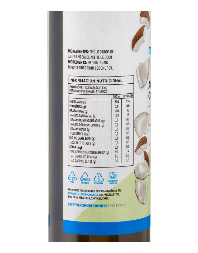 Ingredientes: Triglicéridos de cadena media de aceite de coco.