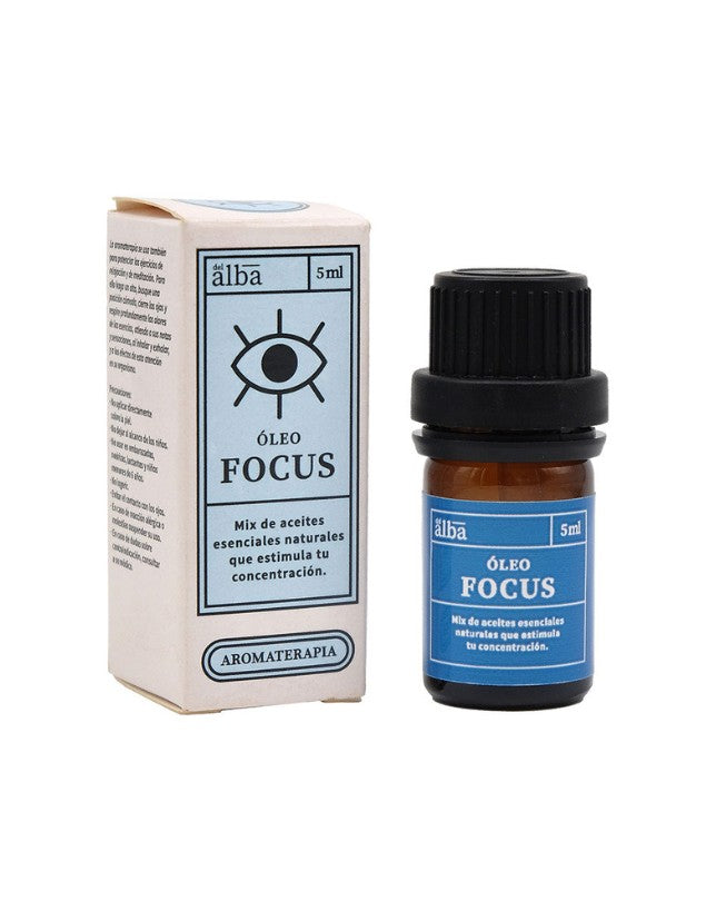 Aromaterapia Óleo Focus, 5 ml. Apícola Del Alba. Focus es un mix de aceites esenciales naturales que estimula la concentración. Es libre de parabenos, conservantes, sales de aluminio y aceites minerales.