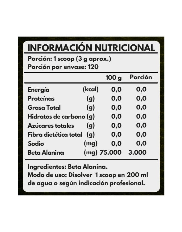 Beta Alanina 360 gr, 120 porciones