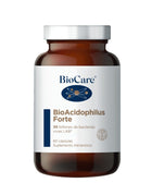 BioAcidophilus Forte 30 Bill, BioCare, proporciona 30 billones de bacterias probióticas vivas por cápsula. Contiene la mezcla de bacterias LAB4®, clínicamente investigadas y comprobadas por ingesta diaria hasta el final de la vida útil, si se almacena correctamente. Contiene cepas compatibles, tolerantes a la bilis y al ácido gástrico con una alta capacidad de adherencia y un historial comprobado de uso seguro en humanos. Hipoalergénico y libre de lácteos. Apto para Veganos.