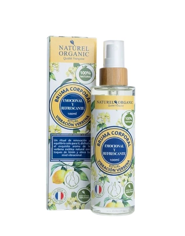 Renuévate mientras perfumas y refrescas tu piel con tu bruma emocional y refrescante ritual vibración verbena, enriquecida con glicerina vegetal y aceites esenciales Franceses de Verbena exótica y limón.