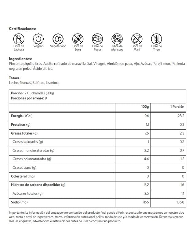 Producto sin gluten, sin colorantes, sin preservantes, sin modificación genética.