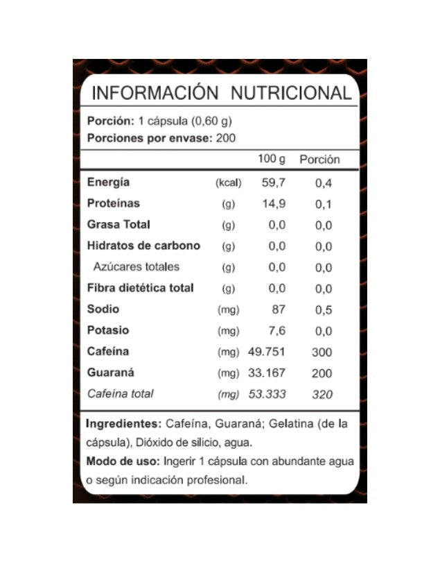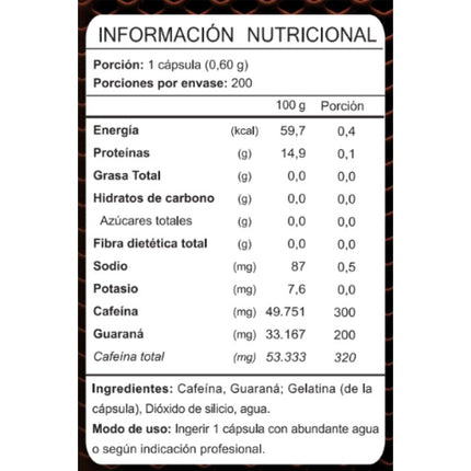 Cafeína 320 g, 200 cáps. FNL. Cafeína FNL s. Leer más...