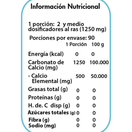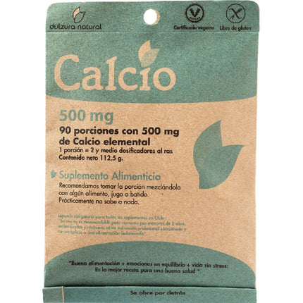 Calcio 500mg, 90 porciones. Dulzura Natural. El calcio es muy importantes para que tus huesos y dientes  estén sanos, ya que este es el principal  elemento que los  compone. Ideal para fortificar tus leches vegetales, batidos , alimentos o para usar como suplemento de calcio. Sin gluten.