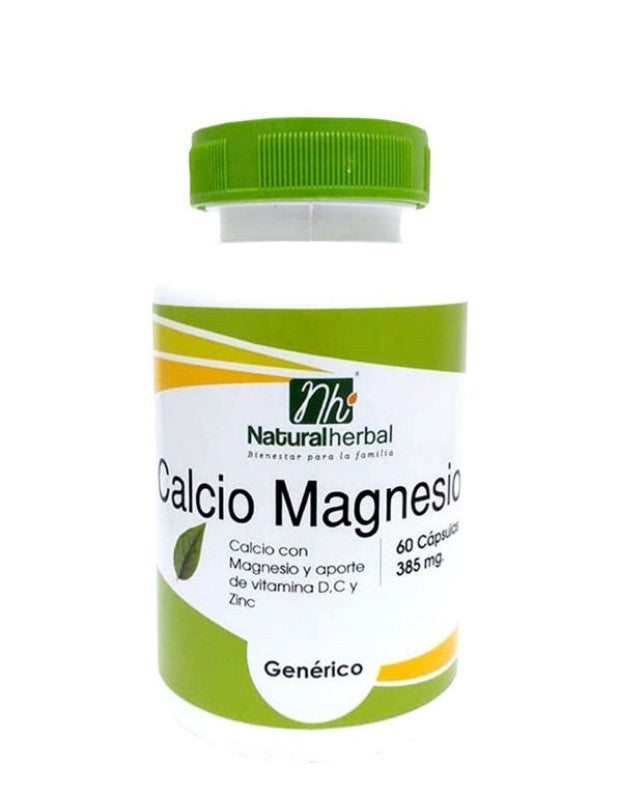 Calcio Magnesio + Vitaminas, 385 mg, 60 caps, contiene un aporte de vitamina D, C y Zinc