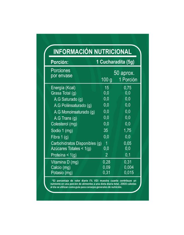Indicaciones de uso: Dosis Recomendada: 1 a 3 cucharaditas (5-15 gramos) al día.