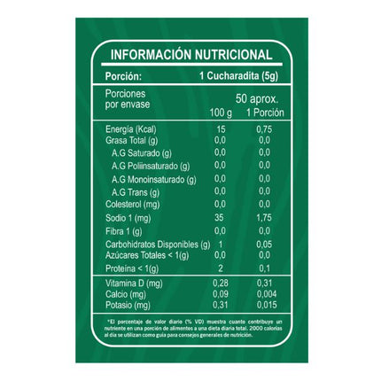 Modo de Consumo: Puede añadirse a batidos, jugos, ensaladas, sopas o mezclarse con agua.