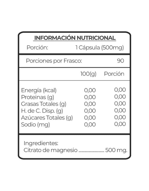 Citrato de Magnesio Plus 500 mg, 90 cáps.