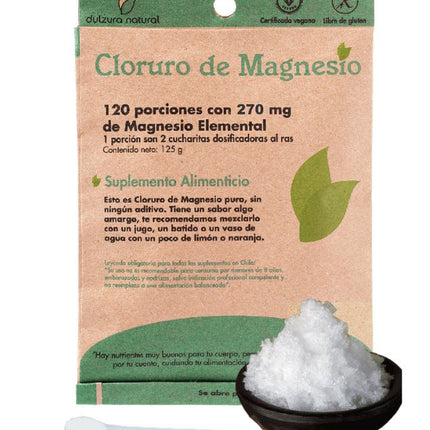 Cloruro de Magnesio, 120 porciones. Dulzura Natural. El Cloruro de Magnesio es algo amargo y si sufres de acidez estomacal no es recomendable, ya que agrega más ácido clorhídrico. Ya que, es amargo, te recomendamos disolverlo en un vaso de agua y limón o con un jugo o batido.
