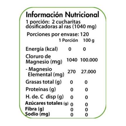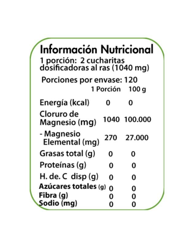 Cloruro de Magnesio, 120 porciones. Dulzura Natural. El Cloruro de Magnesio es algo amargo y si sufres de acidez estomacal no es recomendable, ya que agrega más ácido clorhídrico. Ya que, es amargo, te recomendamos disolverlo en un vaso de agua y limón o con un jugo o batido.
