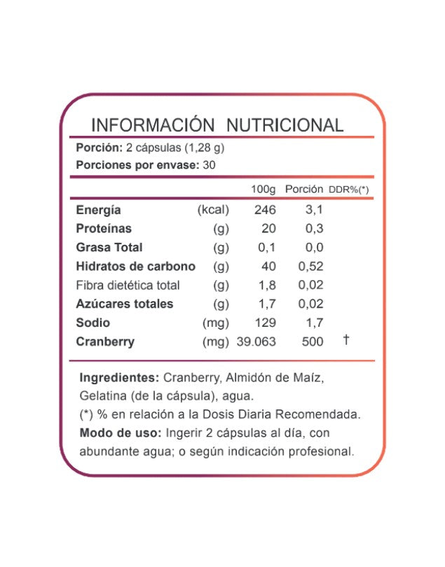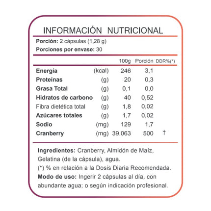 Cranberry, Almidón de maíz, Gelatina de la cápsula.