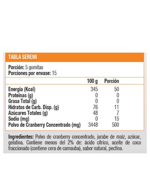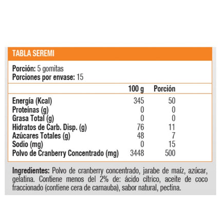 • Gomitas en base a cranberry en polvo