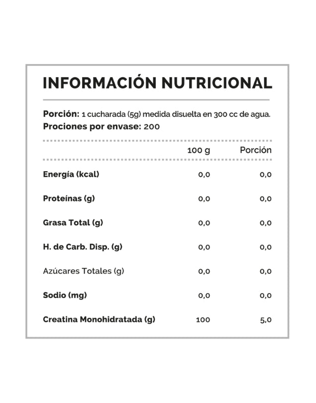 Creatina Monohidratada, Sin Sabor, 1000grs