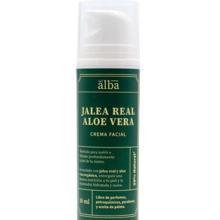 Crema Facial Aloe Vera Jalea Real, 50 ml. Marca Apícola del Alba. La Crema Aloe Vera Jalea Real está elaborada con jalea real y Aloe vera, un mix perfecto que le brindará a la piel diversos nutrientes y vitaminas, mintiéndola suave, limpia e hidratada.