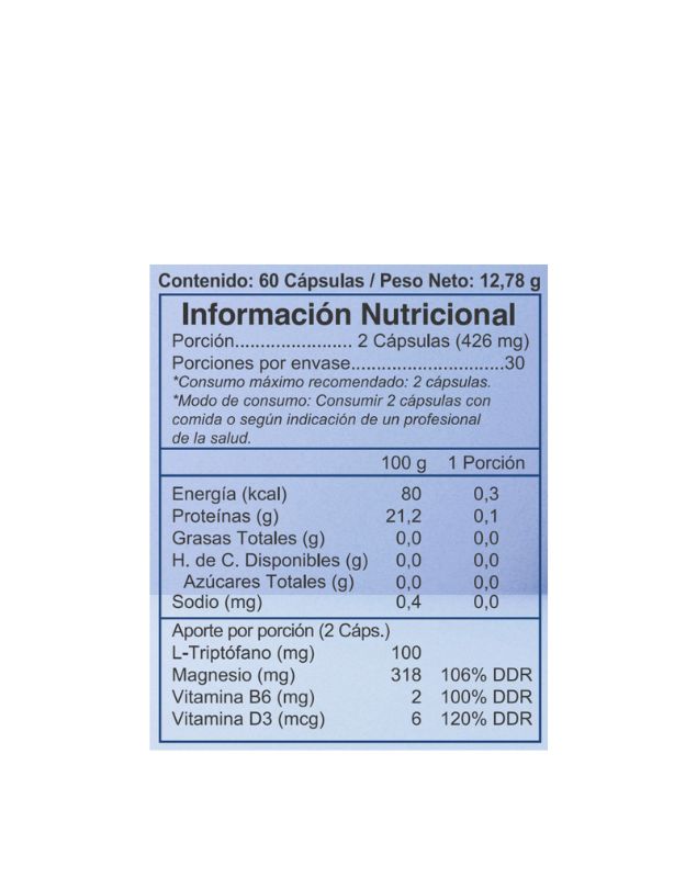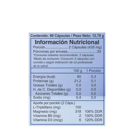 Desconecta, Triptófano, Magnesio, Vitamina D3, Vitamina B6, 60 caps