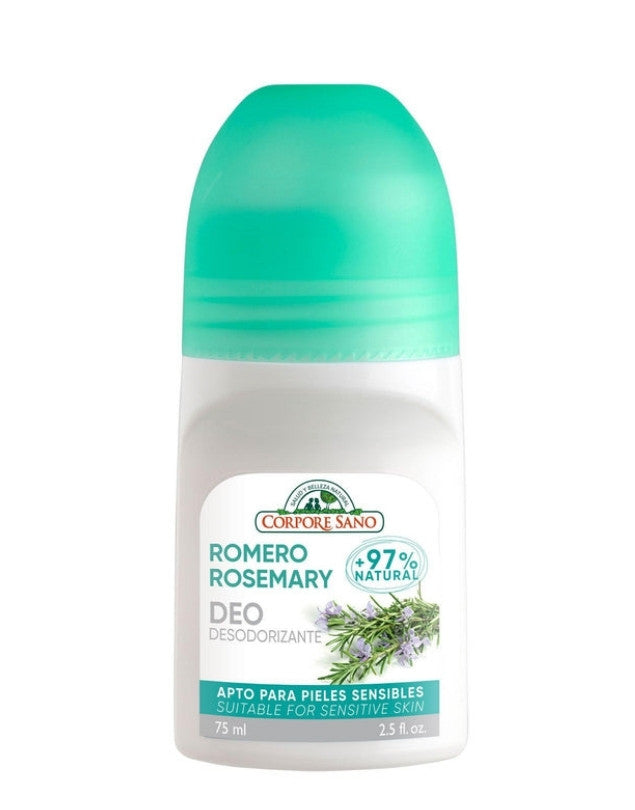 El desodorante roll-on de Romero de Corpore Sano ayuda a controlar la sudoración excesiva y evita la proliferación de las bacterias que causan el mal olor, sin bloquear la sudoración. Este desodorante roll-on con efecto de larga duración contiene más de un 97% de ingredientes de origen natural y es de alta tolerancia dérmica.