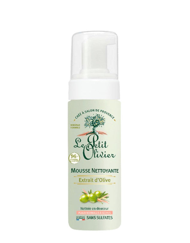 La Espuma Limpiadora de Le Petit Olivier desmaquilla y limpia la piel dejándola fresca, suave y luminosa. Su suave fórmula sin jabón, con aceite de Oliva y Aloe Vera, preserva la piel evitando la deshidratación.