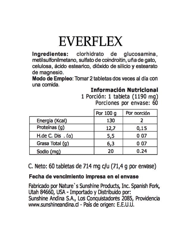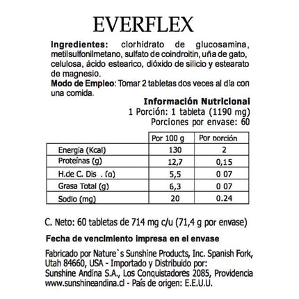EverFlex, Articulaciones, 60 caps. Nature's Sunshine. Este producto es un apoyo total de las articulaciones. VENCIMIENTO: 30-01-2026