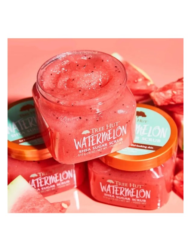 Exfoliante Corporal Sandia, 510g . Tree Hut. ¡Haz de tu rutina de ducha algo inolvidable con el nuevo exfoliante Watermelon de Tree Hut. Deja tu piel suave y brillante con un exquisito aroma a Sandia.
