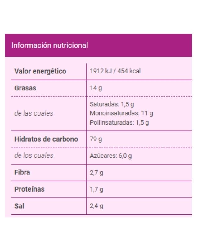 Sin frutos secos: El producto no contiene frutos secos por lo que pueden consumirlo personas alérgicas a estos.