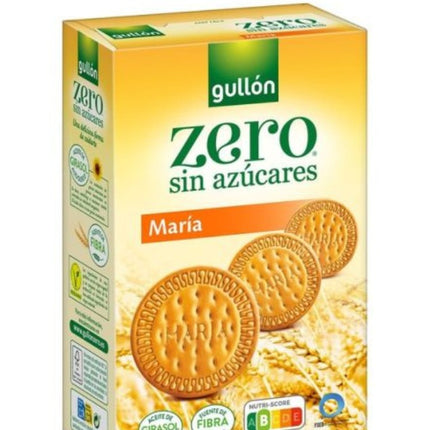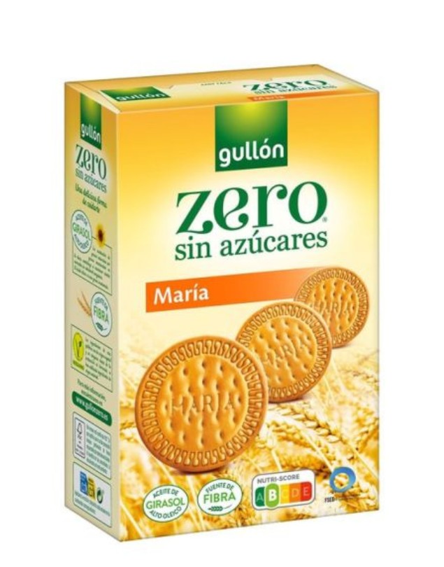 Galletas María sin azúcar, 400g. Gullón. La galleta María que nos lleva acompañando en los desayunos de varias generaciones, sin azúcares. Son fuente de fibra y están elaboradas con aceite de girasol alto oleico y ZERO azúcares.