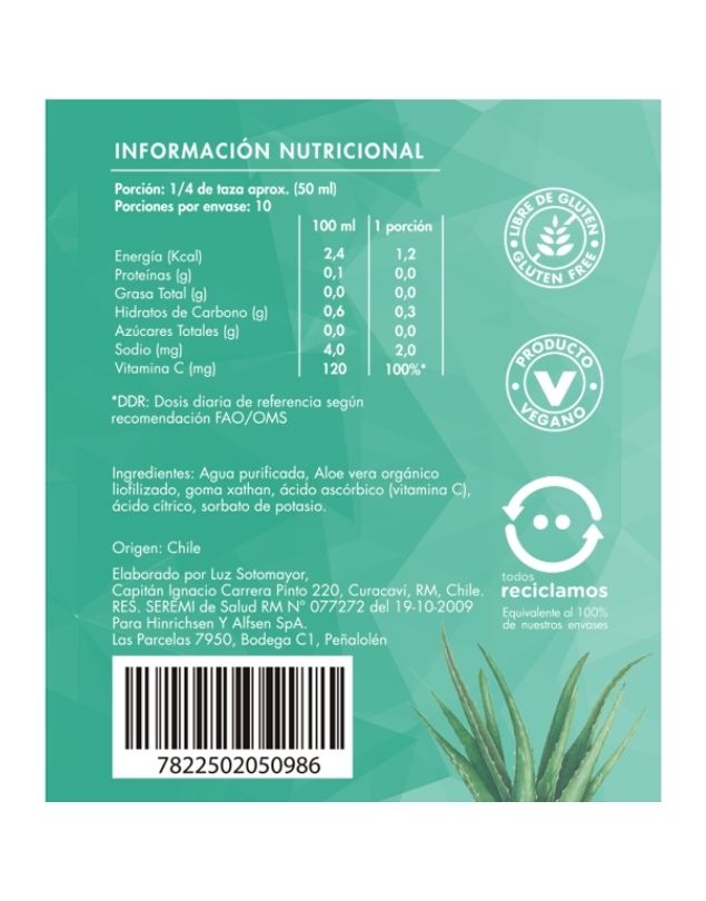 Nuestro Aloe Vera Gel, es el mucílago de Aloe Vera, el que gracias a un tratamiento de calor mantiene sus propiedades inalterables en el tiempo (situación que no sucede con el Aloe fresco, que se oxida en presencia del aire). Ha sido reconstituido al 100%, con la misma concentración de principios activos que el mucílago de la planta.