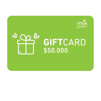 Tarjeta de regalo por un monto de $50.000 para canjear en MixGreen.cl. Un regalo consciente, ecológico y con una gran variedad de posibilidades sustentables para quien la reciba!