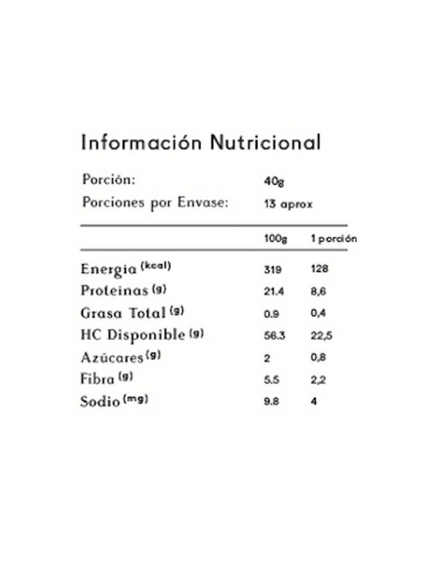 Las lentejas son cosechadas en la región del Maule y molidas en un molino de piedra, en una molienda lenta que mantiene los nutrientes de las lentejas intactos. Certificado libre de gluten por Convivir y comercio justo por la World fair trade organization. Leer más...