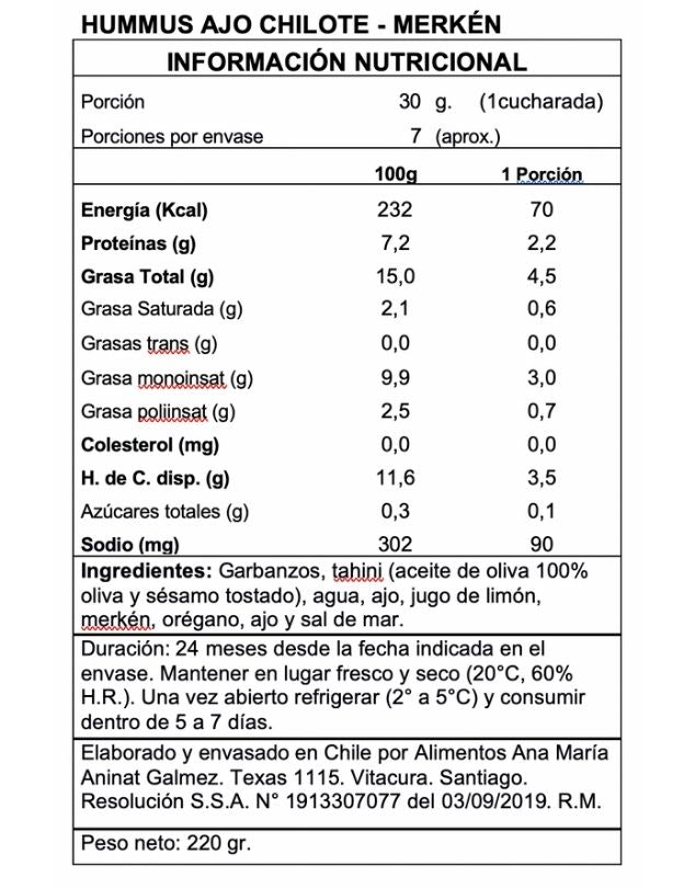 Hummus Ajo Chilote y Merken, 220 g