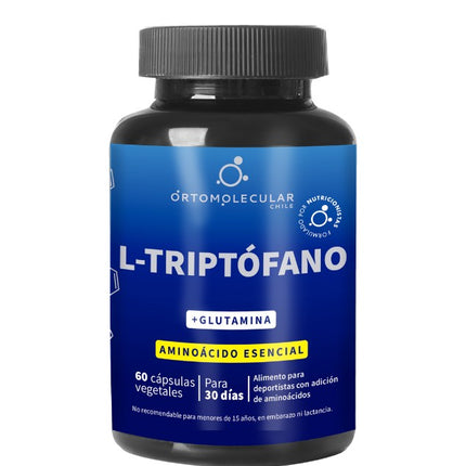 L-triptófano+Glutamina, 60 cápsulas, Ortomolecular. Actúa directamente en el eje intestino-microbiota-cerebro, haciendo que la microbiota module de mejor forma el sistema inmune, el sistema gastrointestinal y sistema nervioso central, incrementando los niveles de serotonina, melanina y niacina.